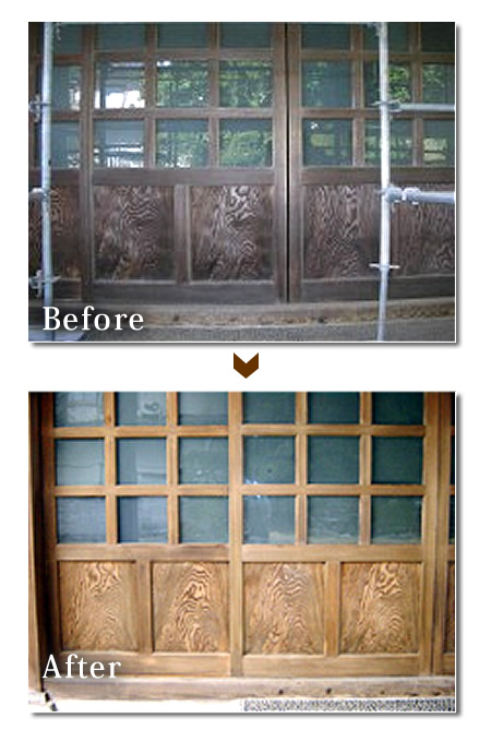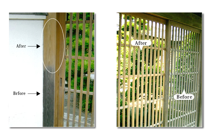 黒くなってしまった原因はカビによるものです。 白木は漂白をしてしまうと、その美しさが失われてしまいます。 ましてや歴史的価値のある白木を漂白するのは絶対に避けるべきです。 SOKENの白木復元クリーニングを施せば、木本来のツヤ、美しさが蘇ります。