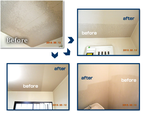 ビニールクロス復元クリーニング 吸音天井復元クリーニング ベッド・タンス・エアコン バイオクリーニング 臭気およびVOCガス除去工事 |